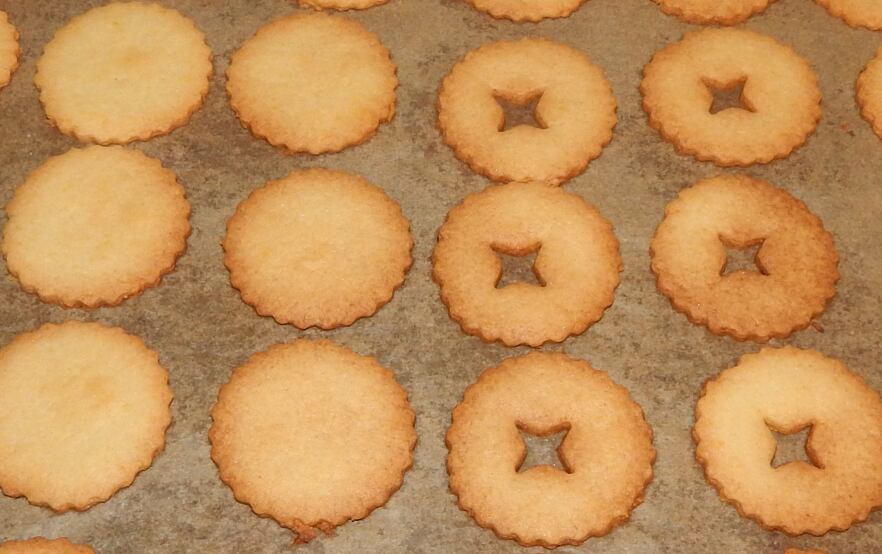 - Leave to cool, then always take one cookie, spread jam