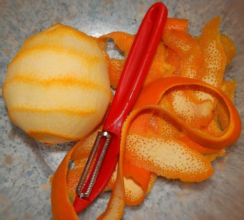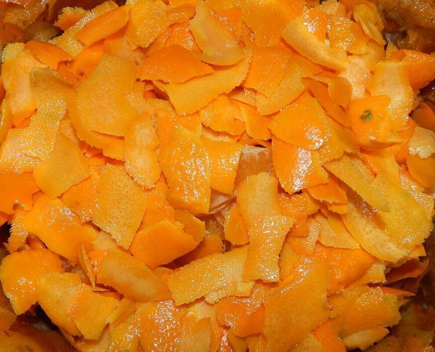 - Remove the outside part of the orange and lemon peels, not including